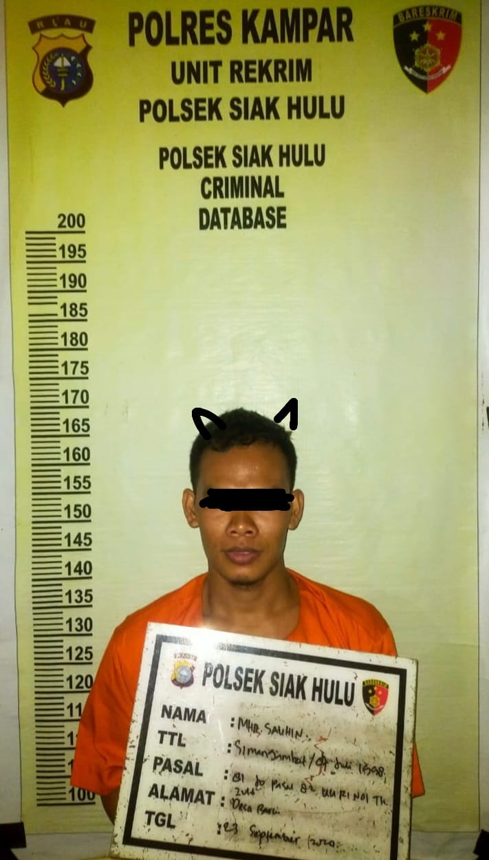 Tidak menunggu lama, Tim Opsnal Hantu Malam Reskrim Polsek Siak Hulu mendapat informasi keberadaan pelaku berhasil mengamankan pelaku MS yang sedang berada di rumahnya di Desa Baru kecamatan Siak Hulu Kab. Kampar.