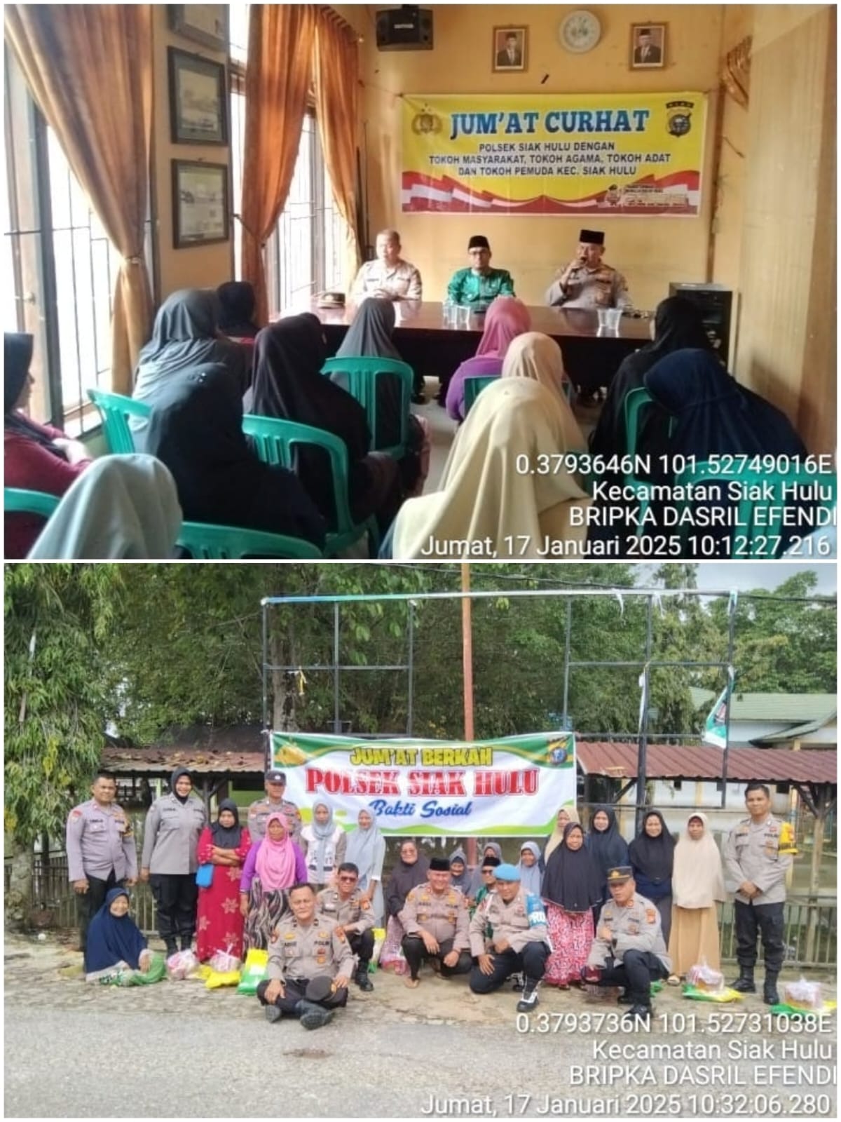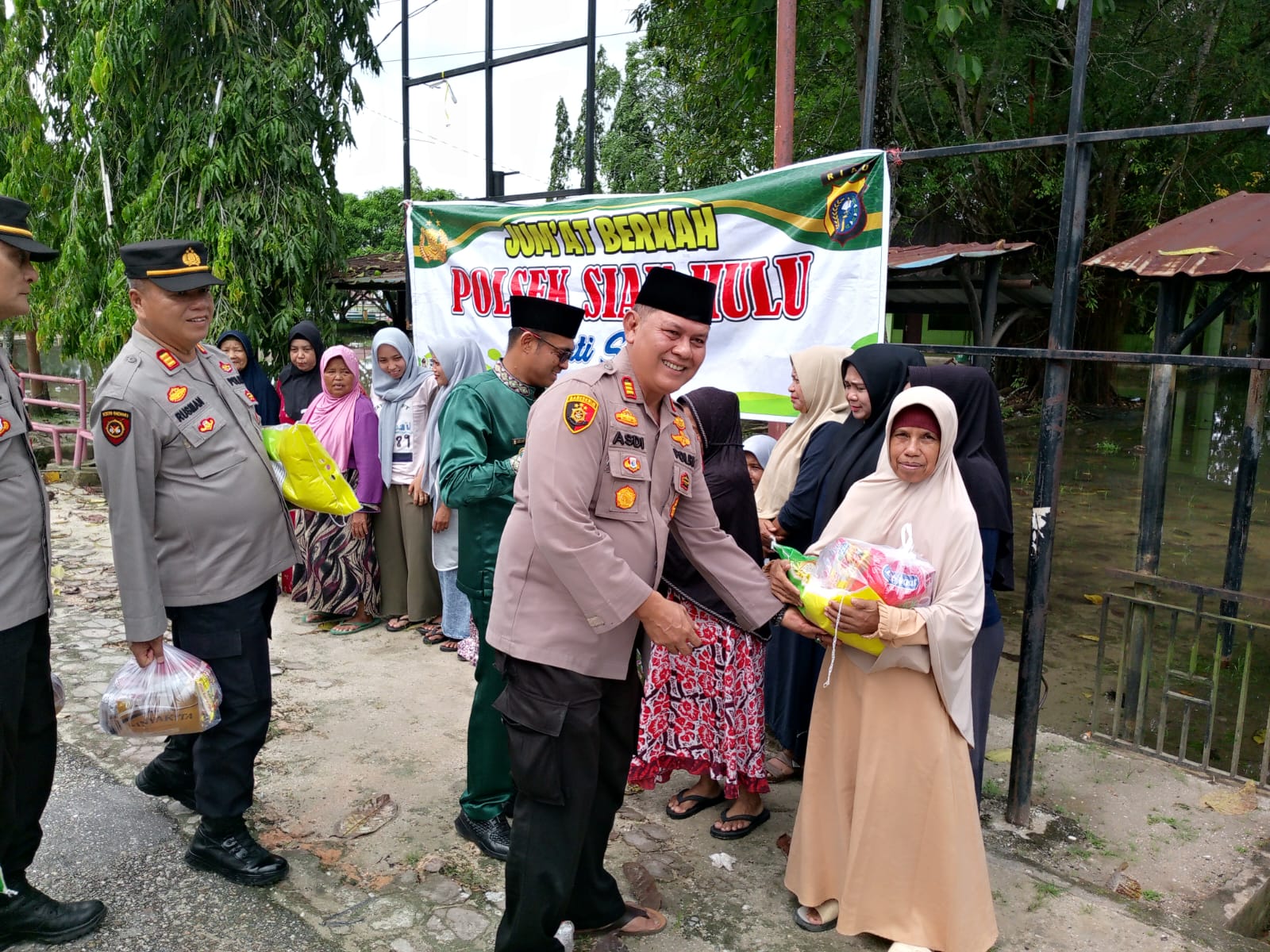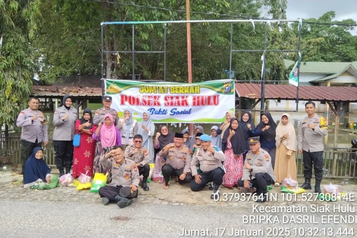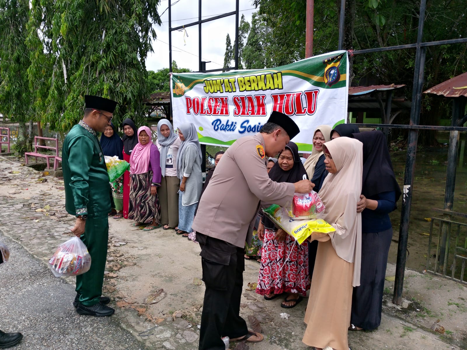 Pada giat Bakti Sosial “Jumat Berkah” sebelum memberikan bantuan sembako kepada 15 warga yang kurang mampu, Kapolsek Siak Hulu AKP Asdisyah Mursyid, S.H menyampaikan bahwa, bantuan ini adalah sumbangsih dari Polsek Siak Hulu untuk membantu warga yang sangat membutuhkan uluran tangan dari siapapun,” semoga bantuan ini bisa bermamfaat,” ucap AKP Asdisyah Mursyid, S.H