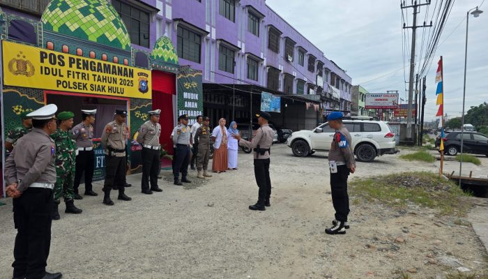 Pos PAM Idul Fitri Tahun 2025 diwilayah hukum Polsek Siak Hulu memasuki hari ke-3 di laporkan dalam situasi aman dan kondusif. Dengan seluruh anggota gabungan,” mari kita tetap semangat dan saling kerjasama, serta terus jalin kekompakan personel Pos PAM Idul Fitri di wilayah hukum Polsek Siak Hulu kita pastikan lalu lintas lancar dan terkendali,” tegas Ka. Pos PAM Iptu JP. Hasibuan