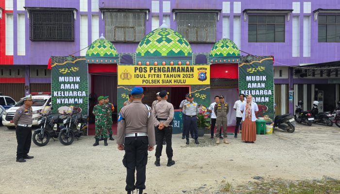 Kapolres Kampar AKBP Mihardi Mirwan, S.I.K, S.H, M.H melalui Kapolsek Siak Hulu Kompol Pauzi, S.H, M.H menegaskan memasuki hari ke-3 Pos PAM Idul Fitri Tahun 2025 Polsek Siak Hulu dengan personel anggota gabungan di pastikan dalam situasi aman dan terkendali. Kami akan terus menunjukkan Show Of Force (Menunjukkan Kekuatan) dan kekompakan dalam mengamankan perayaan Hari Raya Idul Fitri diwilayah hukum Polsek Siak Hulu,” ucap Kompol Pauzi, S.H, M.H