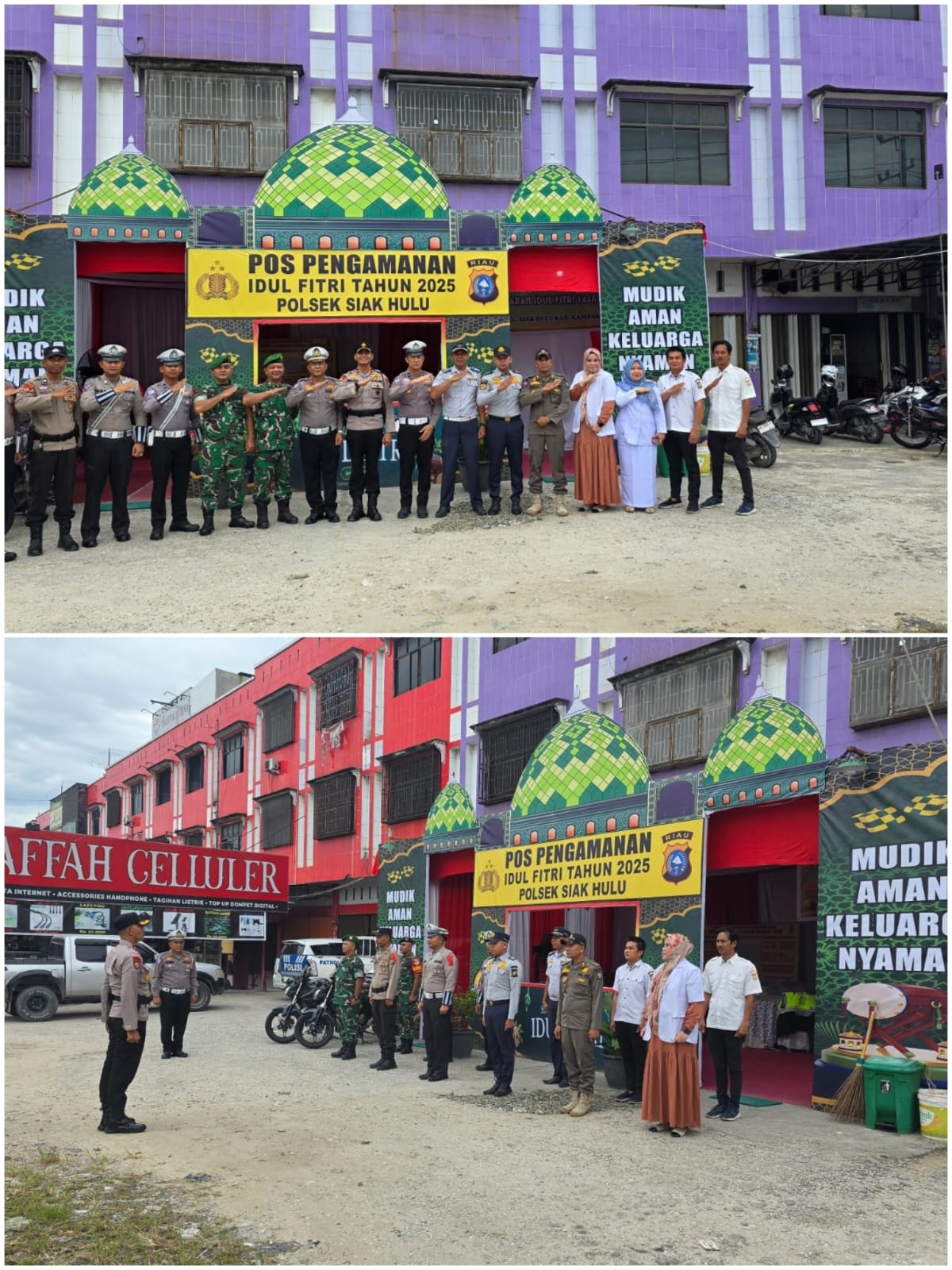 Pos PAM Idul Fitri Tahun 2025 diwilayah hukum Polsek Siak Hulu memasuki hari ke-3 di laporkan dalam situasi aman dan kondusif. Dengan seluruh anggota gabungan,” mari kita tetap semangat dan saling kerjasama, serta terus jalin kekompakan personel Pos PAM Idul Fitri di wilayah hukum Polsek Siak Hulu kita pastikan lalu lintas lancar dan terkendali,” tegas Ka. Pos PAM Iptu JP. Hasibuan