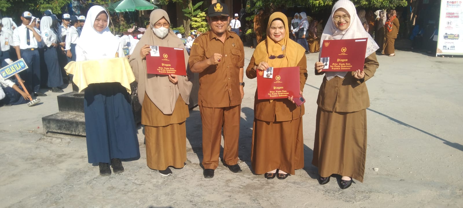 Pada kesempatan ini juga, Kepala UPT SMPN 4 Siak Hulu M. Hujani, S.Pd berkesempatan secara simbolis memberikan penghargaan Satyalancana Karya Stya dari Presiden RI Bapak Joko Widodo kepada Ibu Delfiarti, S.Pd, Novirna Yanti Devita, S.Pd, Asfia Rosanti, M.Pd. ( MO/HMP/SM)