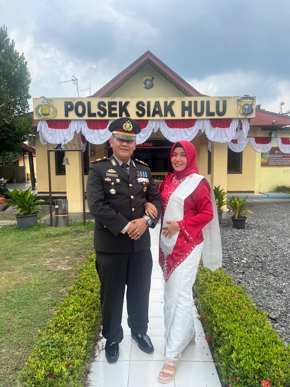 Kapolsek Siak Hulu AKP Asdisyah Mursyid, S.H yang juga didampingi Kanit Reskrim Iptu Jonera Putra, S.H, Panit-I Opsnal Iptu Sutarno, S.H, Panit Opsnal Intelkam Ipda Feri Setiawan, S.E, Panit Binmas Aiptu Zulfaini Umar, Kanit Provost Firdaus, S.H, dan para Bhabinkamtibmas serta jajaran anggota, setelah usai menghadiri upacara Peringatan HUT RI Ke-79.