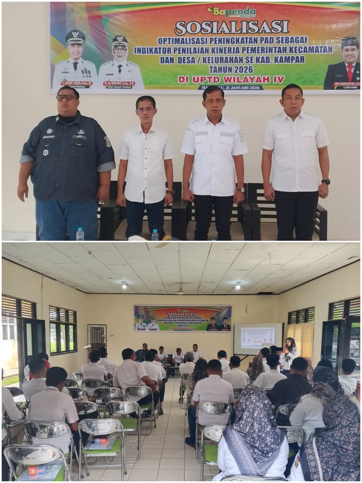 Kampar, Harimaupagi.com – Badan Pendapatan Daerah (Bapenda) Kabupaten Kampar menggelar sosialisasi optimalisasi peningkatan Pendapatan Asli Daerah (PAD) di Aula Kecamatan Siak Hulu. Kegiatan ini menjadi bagian dari langkah strategis pemerintah daerah dalam memperkuat kinerja aparatur desa dan kecamatan menjelang penerapan indikator kinerja baru mulai tahun 2026.