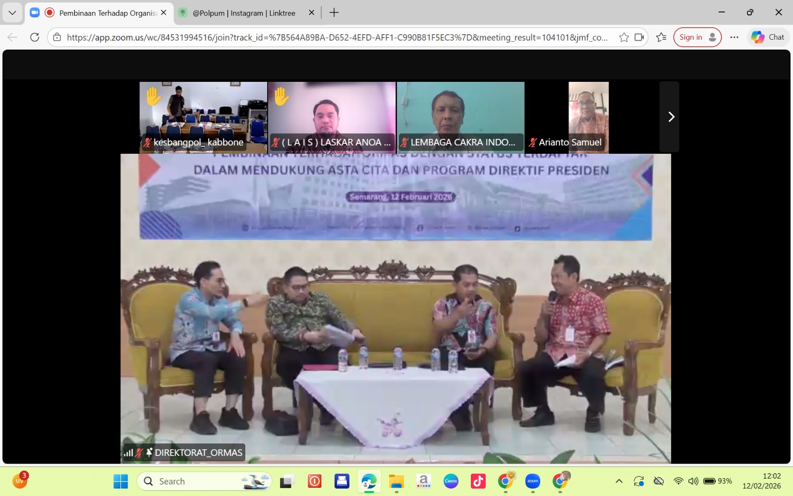 Ormas LCI Hadir Secara Daring dalam Pembinaan Ormas oleh Kemendagri di Semarang