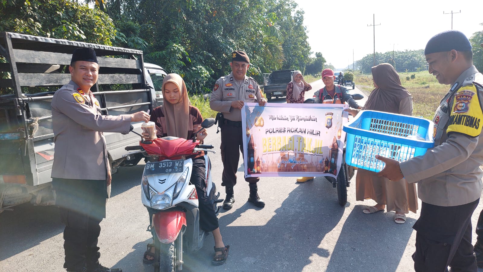 Kapolres Rohil AKBP Isa Imam Syahroni, S.I.K, M.H melalui Kapolsek Rantau Kopar Riko Rizki Masri, S.H, M.H mengatakan kepada Awak Media,bahwa kegiatan ini kami laksanakan atas kepedulian jajaran Polsek Rantau Kopar bersama Bhayangkari Peduli untuk berbagi sedekah kepada warga pengguna jalan raya,” ucap Kapolsek