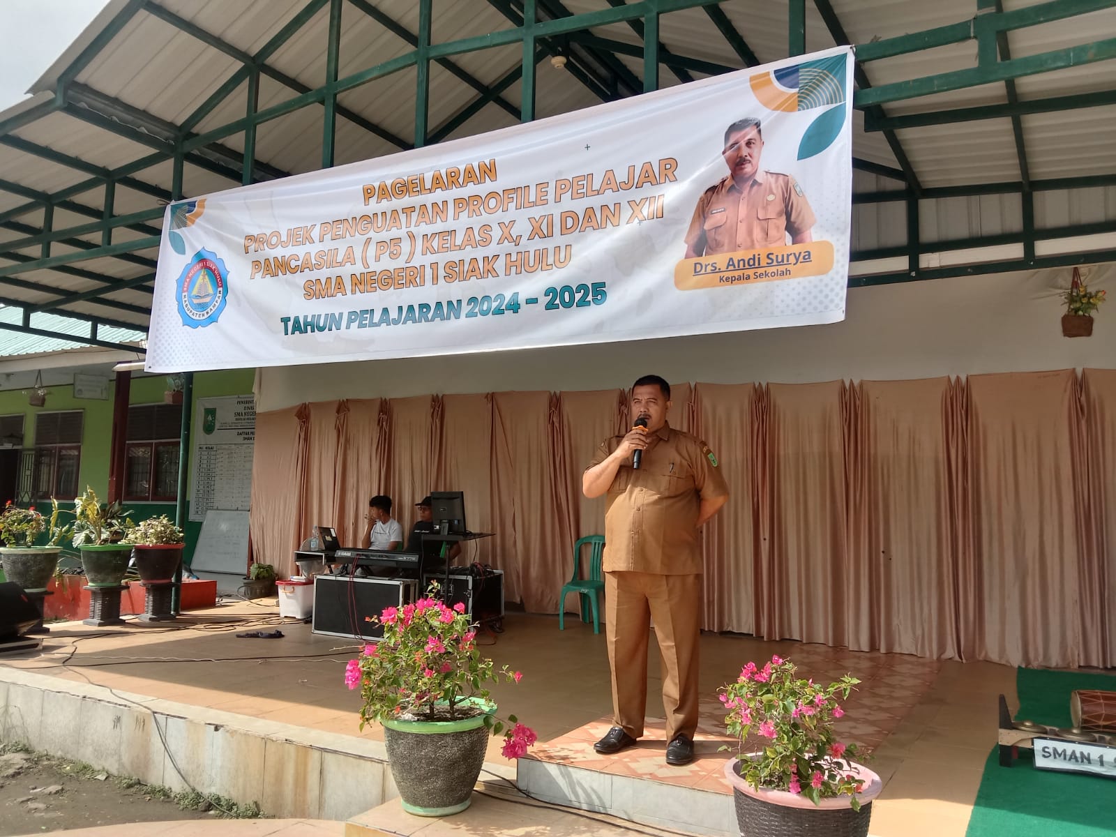 Kepala sekolah Drs Andi Surya. Selasa (26/11/2024)? sekira pukul 08.00 Wib, secara resmi membuka langsung kegiatan dengan melakukan pemukulan gong dan pengguntingan pita dan dalam sambutannya menyampaikan dimana tujuan P5 adalah ingin memberikan pengetahuan dan keterampilan tambahan dari lingkungan sekitarnya.