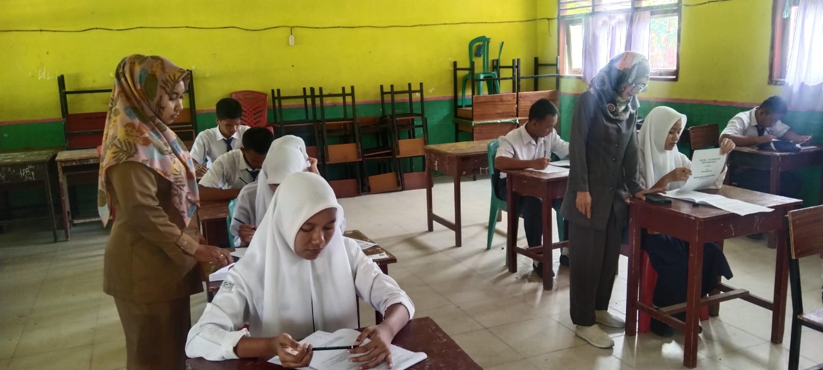 Dengan memakai 7 ruang kelas dan setiap ruang kelasnya sebanyak 20 orang dan ada juga 2 ruang kelas yang berisi 16 orang. Setiap ruang kelas di awasi oleh 2 guru pengawas. Hari ini memasuki hari ke 2, Ujian sekolah kami laksanakan di mulai tanggal 6, 7, 8, 11, 13, dan 14 Mei 2024,” ungkap Taromi