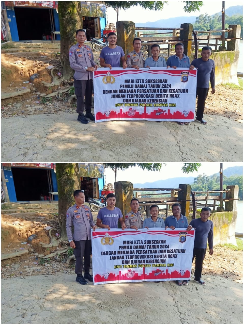 Kapolres Kampar AKBP Ronald Sumaja S.I.K, M.H melalui Kapolsek Kampar Kiri Kompol Mhd Daud S.H menegaskan kepada seluruh jajaran Polsek Kampar Kiri, agar terus memberikan edukasi Kamtibmas kepada warga dan laksanakan Giat Cooling System Pemilu Damai 2024. Upayakan sambangi rumah rumah warga maupun tempat tempat keramaian, agar nantinya Pemilu Damai dapat berjalan lancar,baman dan terkendali.” tegas Kapolsek.