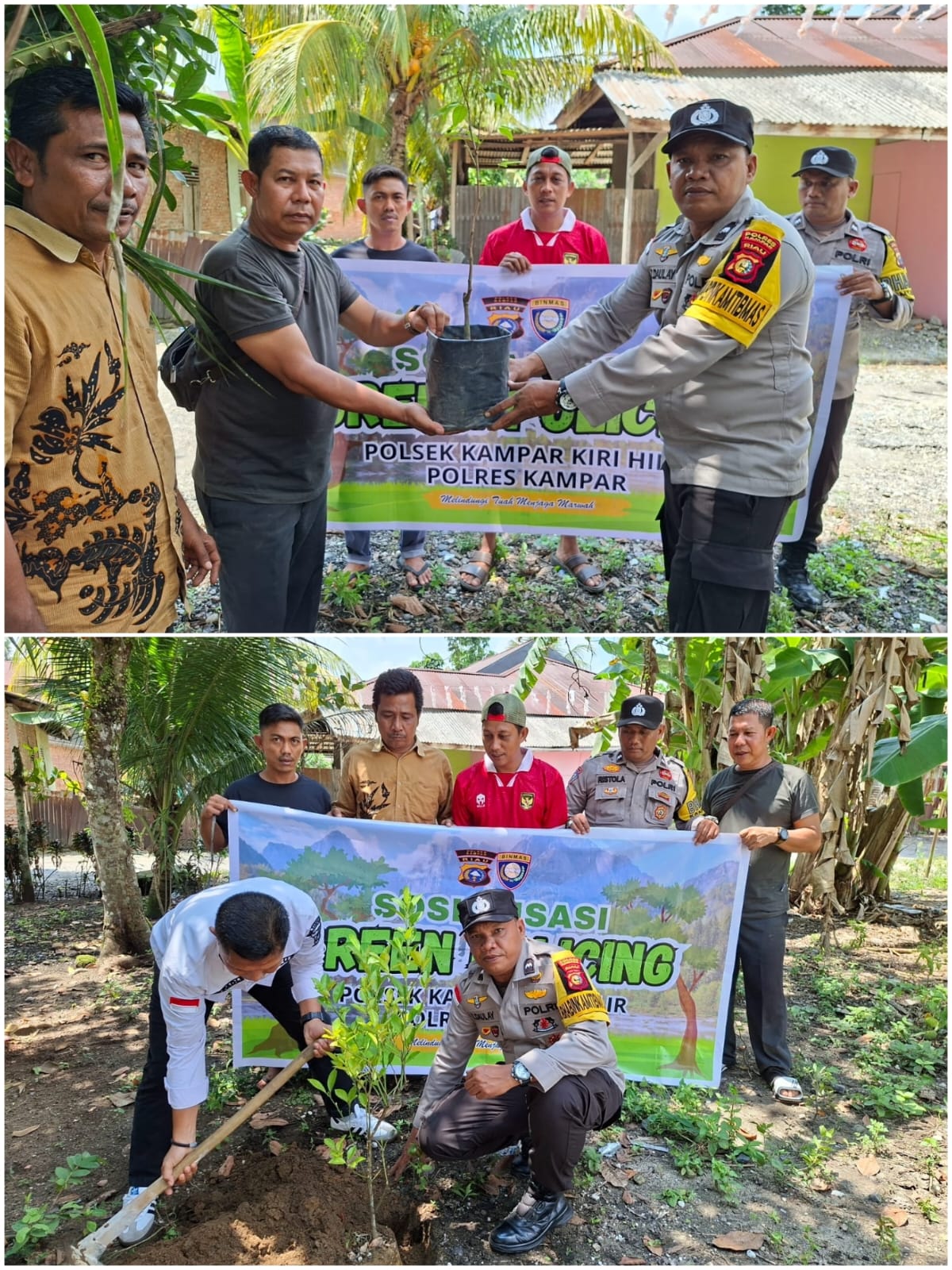 Polsek Kampar kiri Hilir Sosialisasi Green Policing dan Penanaman Pohon di Lingkungan Pematang Lamo RT 10 RW 05 Kelurahan Sungai Pagar