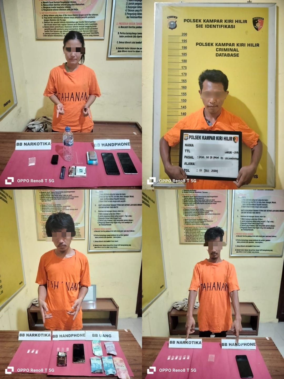 kampar, Harimaupagi.com – Empat orang pelaku Narkoba diantaranya ada sepasang suami istri nekat melakukan pengedaran Narkoba di wilayah Kecamatan Kampar Kiri Hilir dan berakhir di jeruji besi Polsek Kampar Kiri Hilir, Sabtu (13/7/2024) sekira pukul 16.00 Wib.