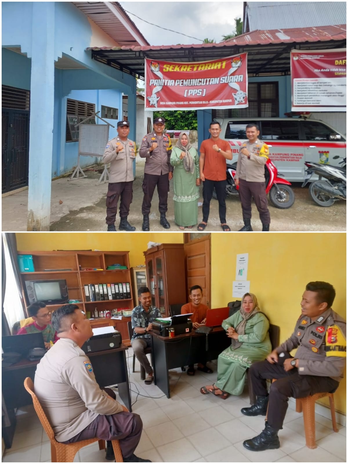 Adanya perintah dari Kapolsek Perhentian Raja Ipda Riko Rizki Masri SH,MH dalam giat patroli sekira pukul 09.30 Wib. Kanit Binmas Bripka Seprizoni Marta bersama Bhabinkamtibmas Bripka Suryatman Akbar, S.H dan Bripka Arifin Ahmad Turun langsung kelapangan dan memberikan himbauan Pemilu Aman dan Damai kepada masyarakat dan Mengunjungi PPS Desa Kampung Pinang kecamatan Perhentian Raja kabupaten Kampar.