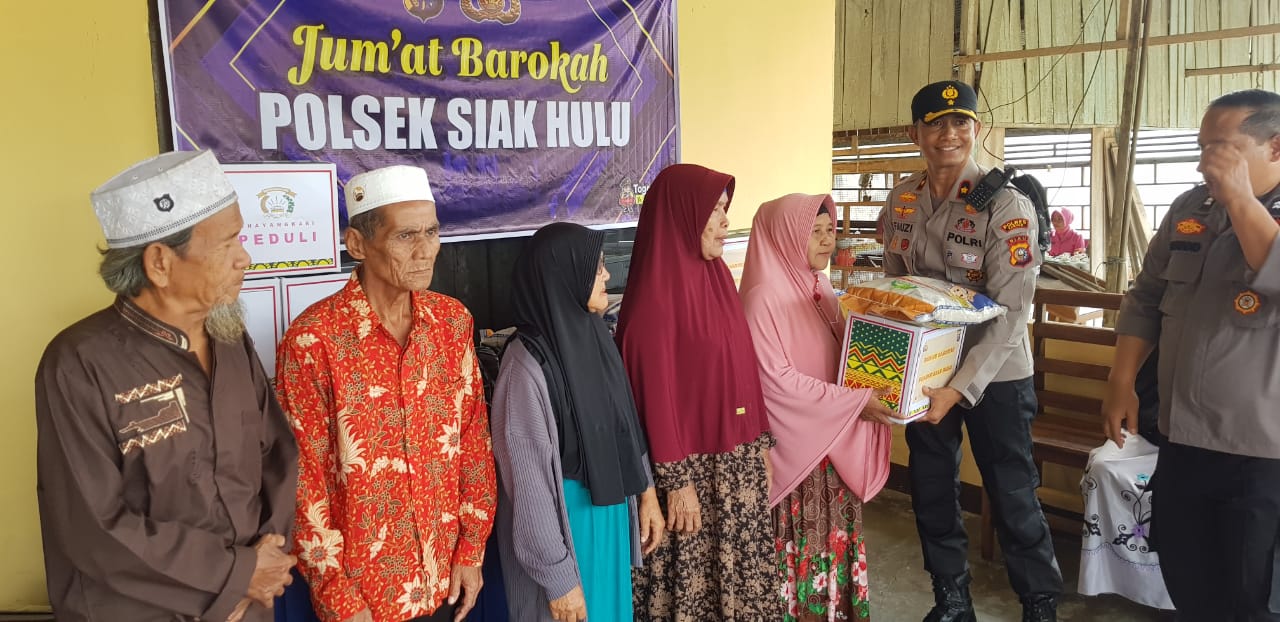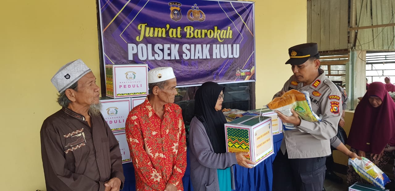 Kegiatan Tausiyah agama oleh penceramah Al-Ustad Nofriadi, S.Ag diikuti oleh seluruh Personel anggota Polsek Siak Hulu dan seluruh pengurus Bhayangkari Peduli. Dan dilanjutkan giat Jumat Berkah dengan memberikan bantuan kepada warga kurang mampu berupa, 10 Paket dari Polsek Siak Hulu, 10 Paket dari Bhayangkari Peduli, dan 10nPaket dari PT. Agung Bumi Lastari (ABL)