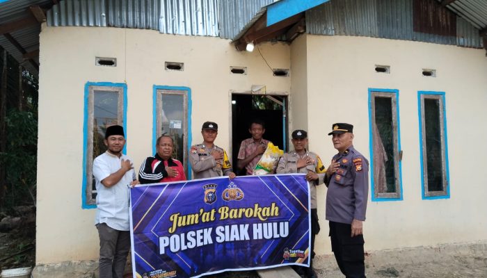 Pada kesempatan giat Jum’at berkah, Polsek Siak Hulu melalui Personel Anggota pada kesempatan Bakti Sosial ini berkesempatan memberikan bantuan Paket sembako kepada warga yang kurang mampu dan perlu diperhatikan. Melalui pemberian sembako ini, semoga warga yang menerimanya bisa bermamfaat dan dapat mengurangi sedikit beban kehidupannya ” pungkas Kapolsek Siak Hulu AKP Hendra Setiawan, S.H (MO/HMP/POL/SM)
