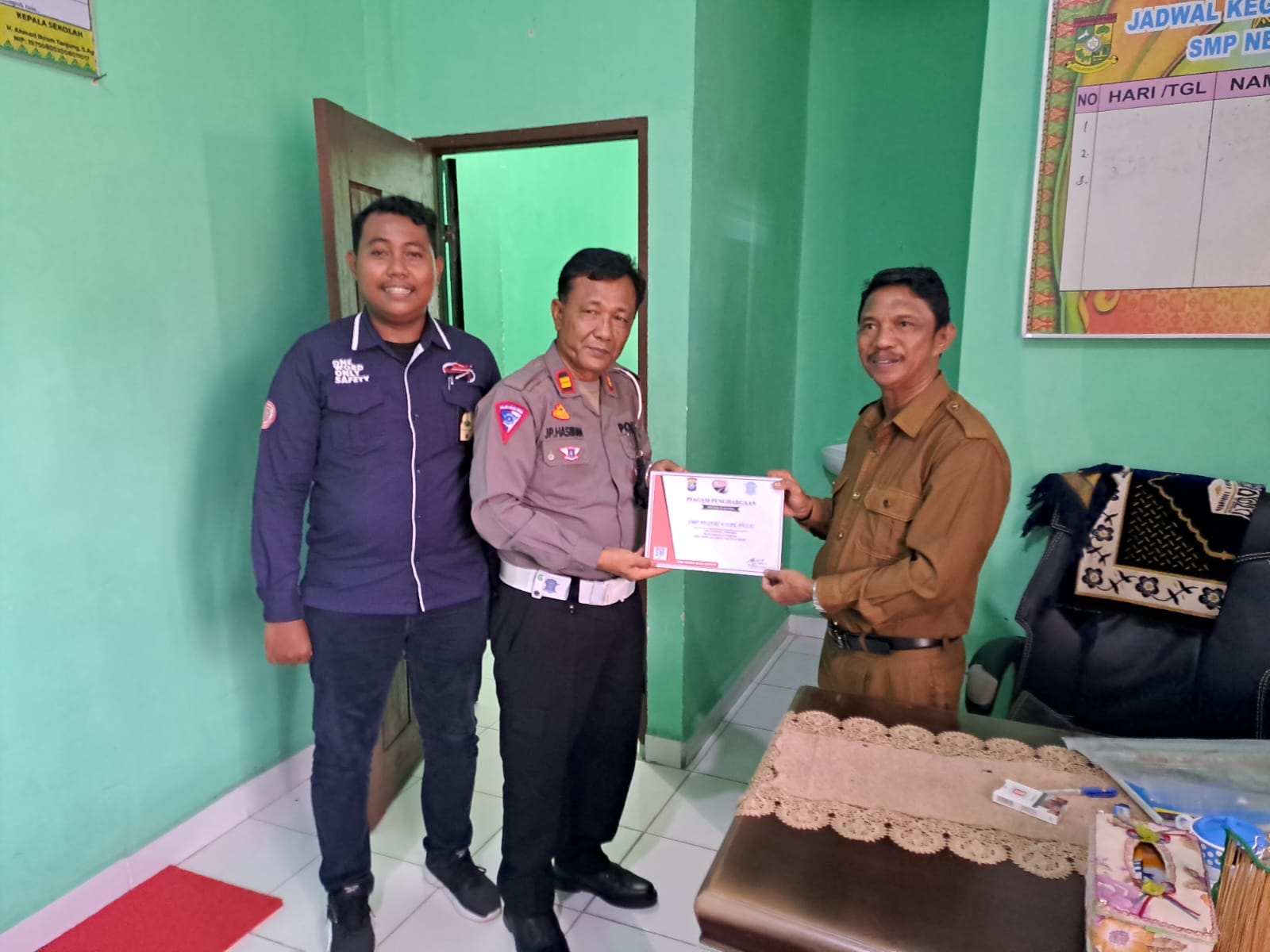 Kepala UPT SMPN 6 Siak Hulu H. Ahmad Ikrom T. S.Ag dengan hadirnya Polri di tengah tengah sekolah melalui program Ditlantas Polda Riau “Go To School”, kami segenap pihak sekolah memberikan Apresiasi pada Program Ditlantas Polda Riau tersebut dan mengucapkan terima kasih kepada Tim ISDC Cabang Riau dan Kanit Lantas Polsek Siak Hulu yang telah memberi kesempatan dan bersosialisasi tentang keselamatan dan keamanan berkendara kepada seluruh siswa siswi UPT SMPN 6 Siak Hulu.