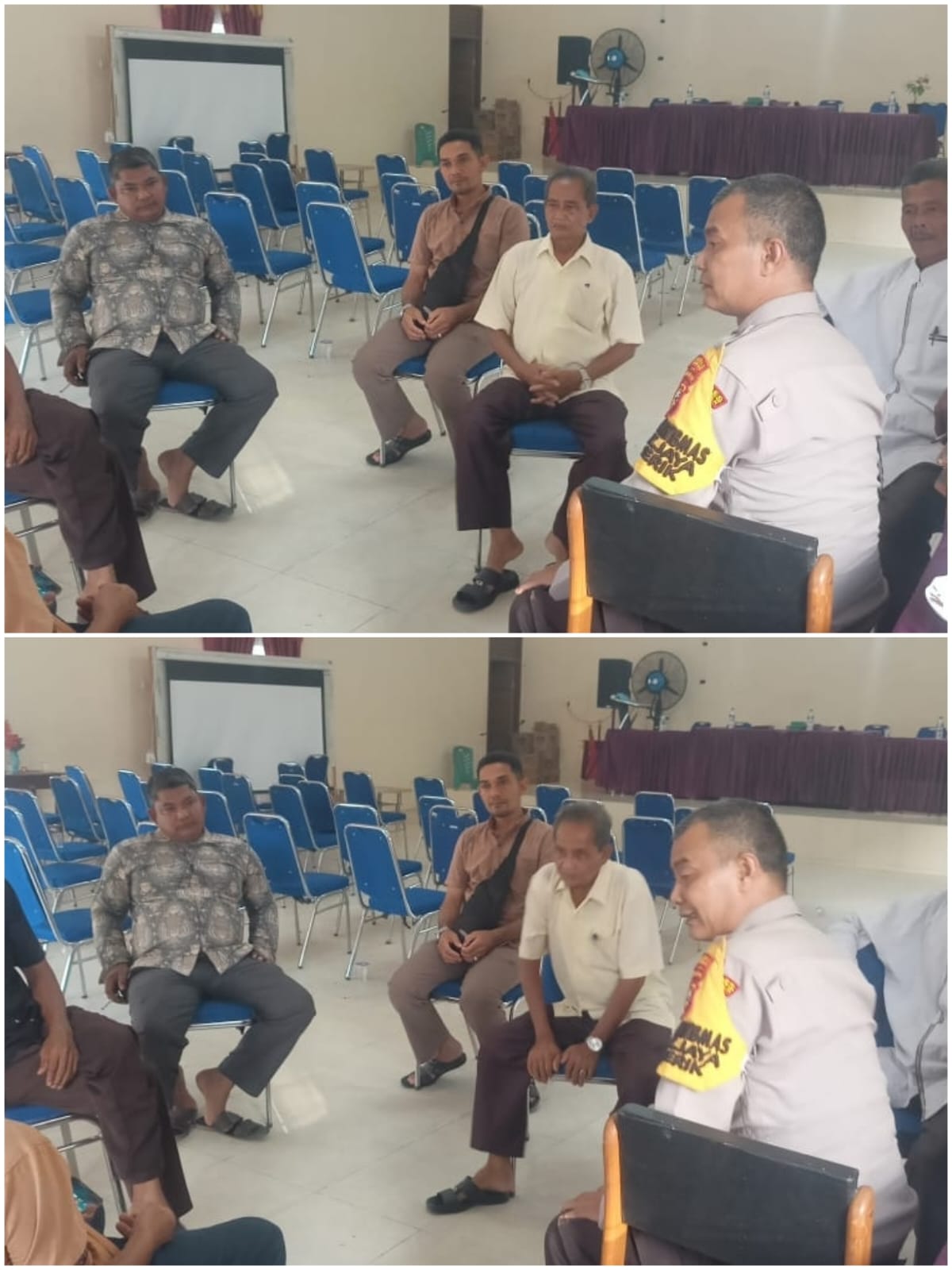 Kampar, Harimaupagi com – Terwujudnya Pemilu Damai dengan menciptakan Situasi Kamtibmas yang Kondusif menjelang Pemilu Damai Tahun 2024, Para Bhabinkamtibmas terus rutin Laksanakan Imbauan Cooling System Pemilu Damai, Bhabinkamtibmas Desa Kepau Jaya dan Desa Pangkalan Serik Bripka Zulkarnain lakukan giat Cooling System Pemilu Damai di desa Kepau Jaya. Rabu (17/1/2024)