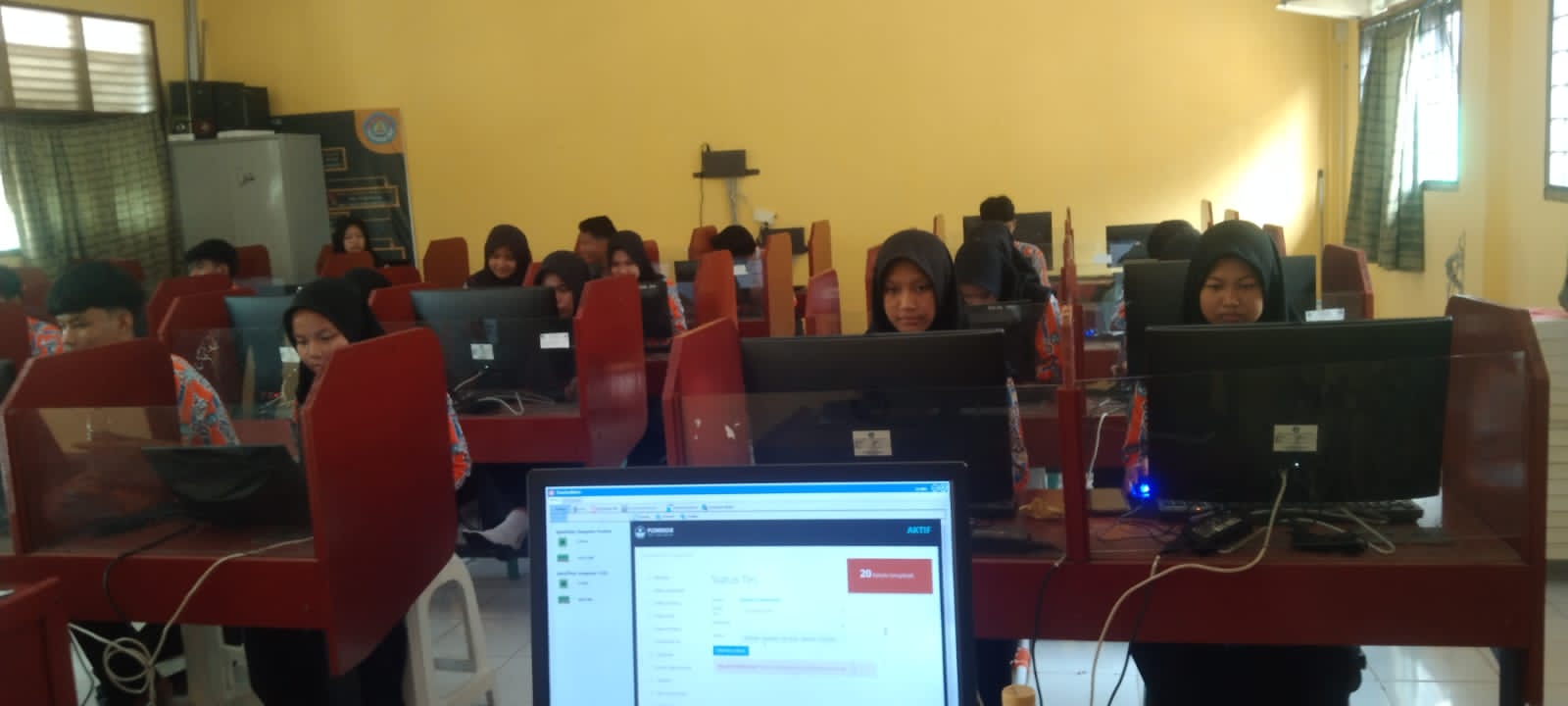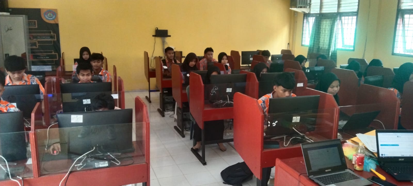Kepala Sekolah (Kepsek) SMAN 1 Siak Hulu Drs. Andi Surya saat ini pantau langsung kesiapan siswa siswi yang melaksanakan simulasi ANBK bertempat di ruang Komputer SMAN 1 Siak Hulu. Untuk pengawas simulasi Ali Iskandar, S.Sos, M.Pd, Yunita M.Pd, selaku Protor Arif Rahman, S.Pd, Teknisi Purwanto, S.Kom.