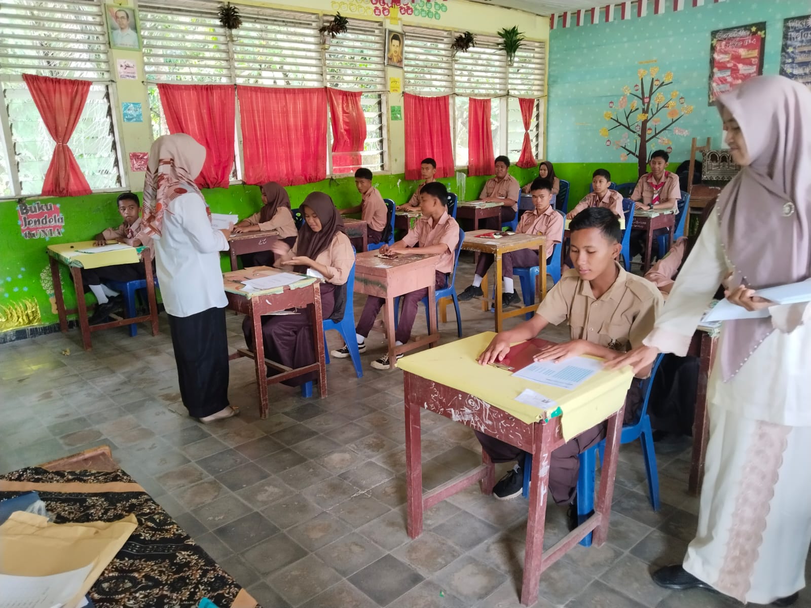 Dengan memakai 6 ruang kelas dan setiap ruang kelasnya sebanyak 20 orang dan ada juga 4 ruang kelas yang berisi 21 orang. Setiap ruang kelas di awasi oleh 2 guru pengawas. Hari ini memasuki hari ke 3, dan selama Ujian sekolah berlangsung untuk kelas 7 dan 8 kami di liburkan,” ungkap Ustadz Azmi