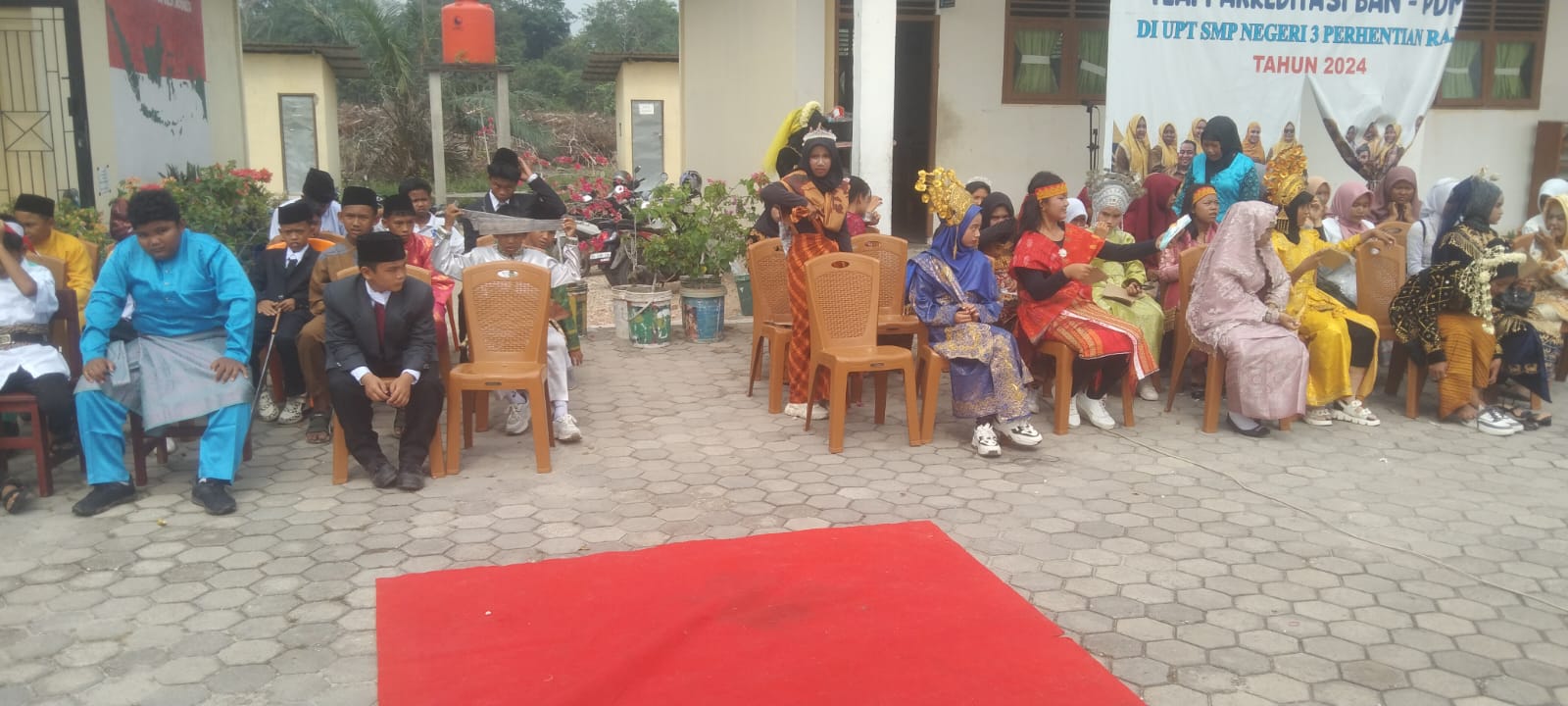Sekira pukul 08.00 Wib, tampak Ratusan iring iringan siswa siswi UPT SMPN 3 Perhentian Raja melakukan Pawai dengan berbagai macam pakaian adat Nusantara berkeliling memutari jalanan dan kembali lagi ke halaman sekolah melanjutkan persiapan perlombaan lainnya.