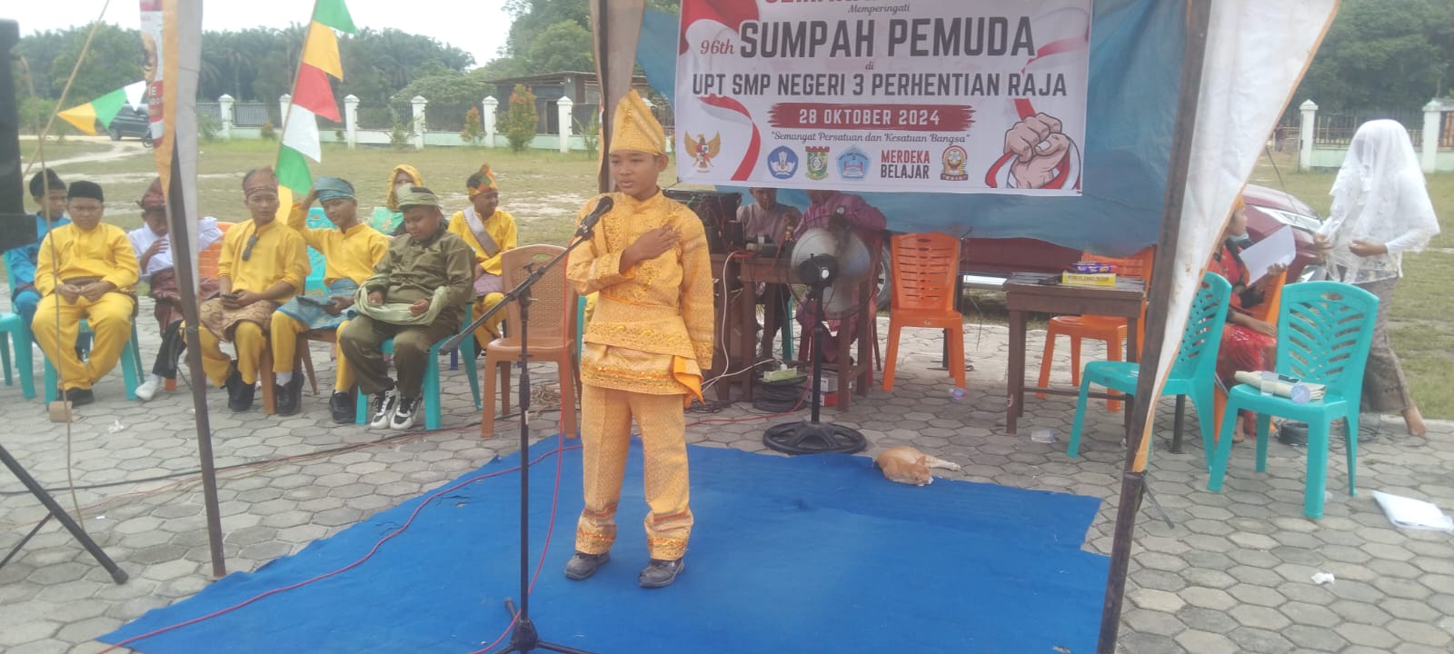 Kesempatan ini, sampai halaman sekolah Kepala UPT SMPN 3 Perhentian Raja Yusrina, S.Pd diruang kerjanya menjelaskan, bahwa hari ini kami memperingati HUT Sumpah Pemuda dan sekaligus merayakannya dengan berbagai perlombaan ” terang Yusrina, S.Pd