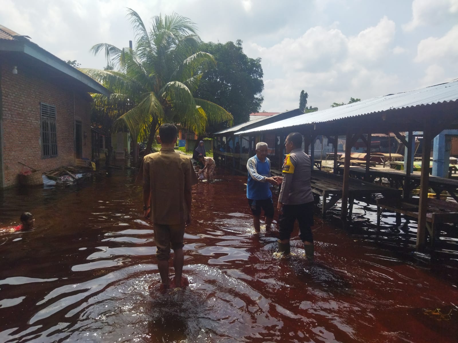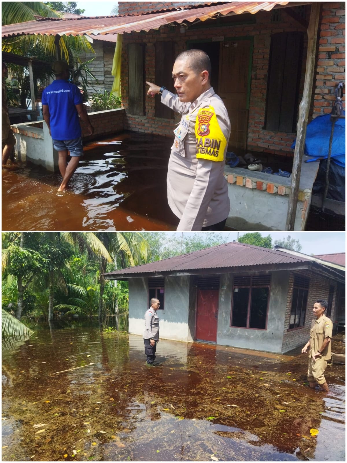 Sementara untuk hewan ternak sudah di ungsikan. Tampak di perkirakan ratusan rumah warga dan kebun Kelapa Sawit serta kebun palawija milik warga juga sudah di genangi air,” terang Aipda Aipda Nurhasdianto S.H.