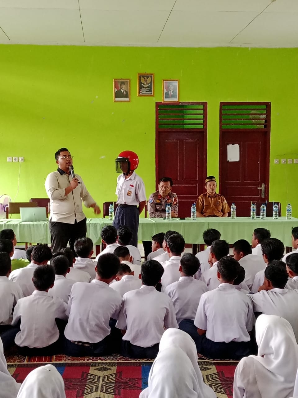 Dengan Tema “Goes To School” Program Ditlantas Polda Riau melalui Tim ISDC Cabang Riau Anggi Rianes Dwipangga S.Kom dan Ade bersama Kasat Lantas Polres Kampar AKP Vino Lestari dan Kapolsek Siak Hulu Kompol Pauzi, S.H, M.H diwakili Kanit Lantas Polsek Siak Hulu Iptu JP. Hasibuan didampingi Bripka Ikra Dinata, dan turut juga mendampingi dalam peliputan kegiatan Sosialisasi Editor Eksekutif Media Online Harimaupagi.com Evin Rasel.