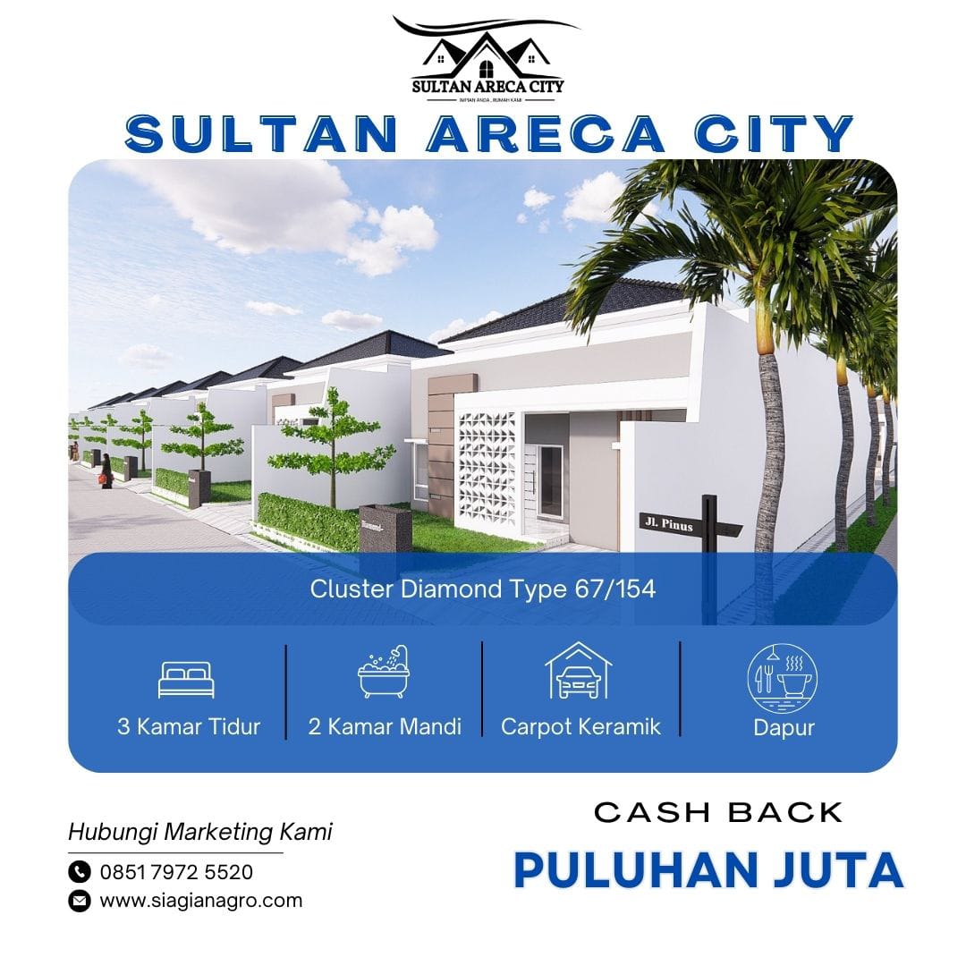 Perumahan Sultan Areca City memiliki fasilitas umum yang lengkap dan berkualitas. Perumahan ini memiliki jalan utama, jalan masuk, jalan lingkungan, saluran air, saluran listrik, saluran telepon, taman, kolam renang, gym, sport center, dan playground. Perumahan ini juga memiliki keamanan 24 jam, dengan sistem CCTV, pagar, dan pos penjagaan.
