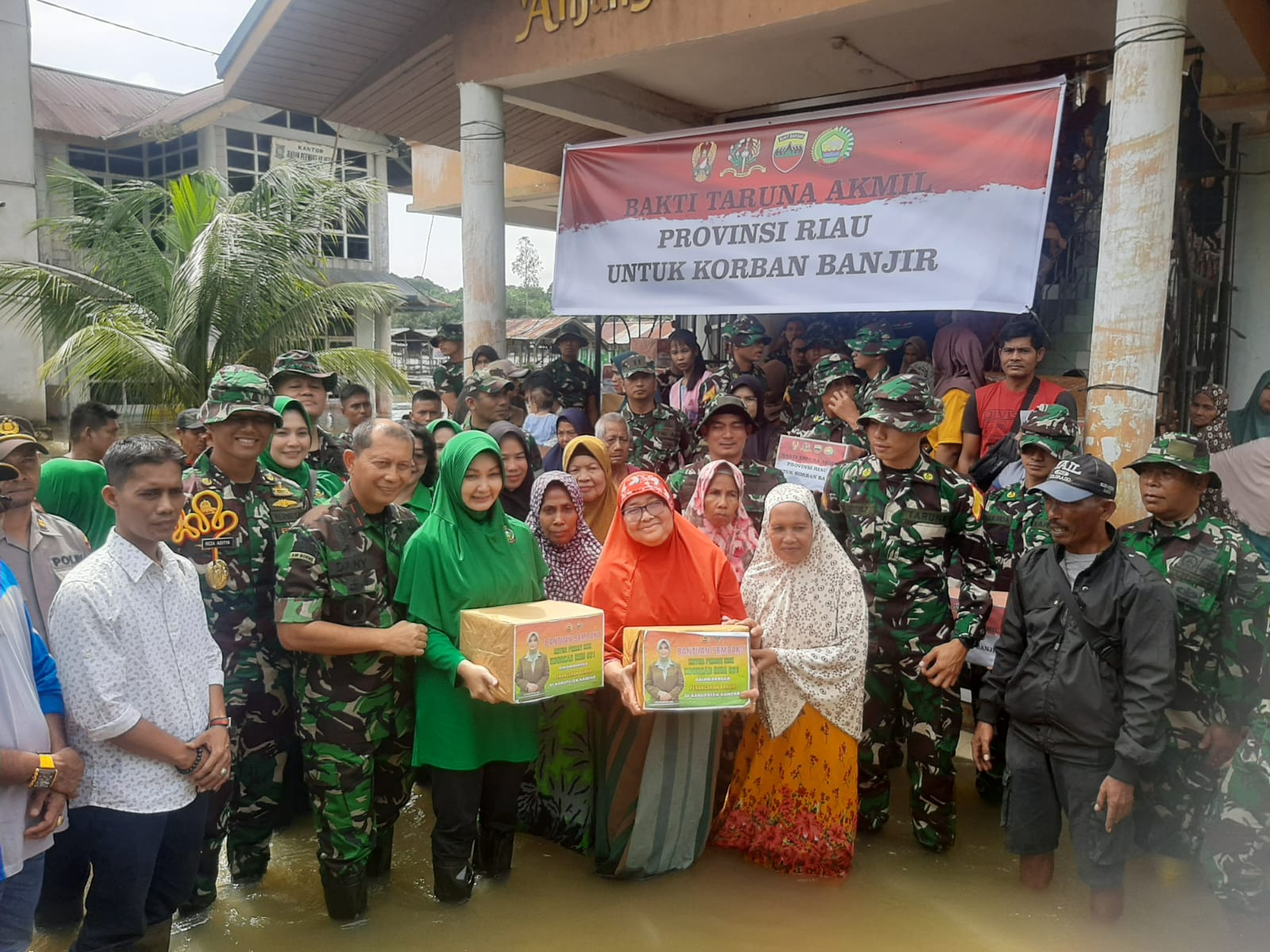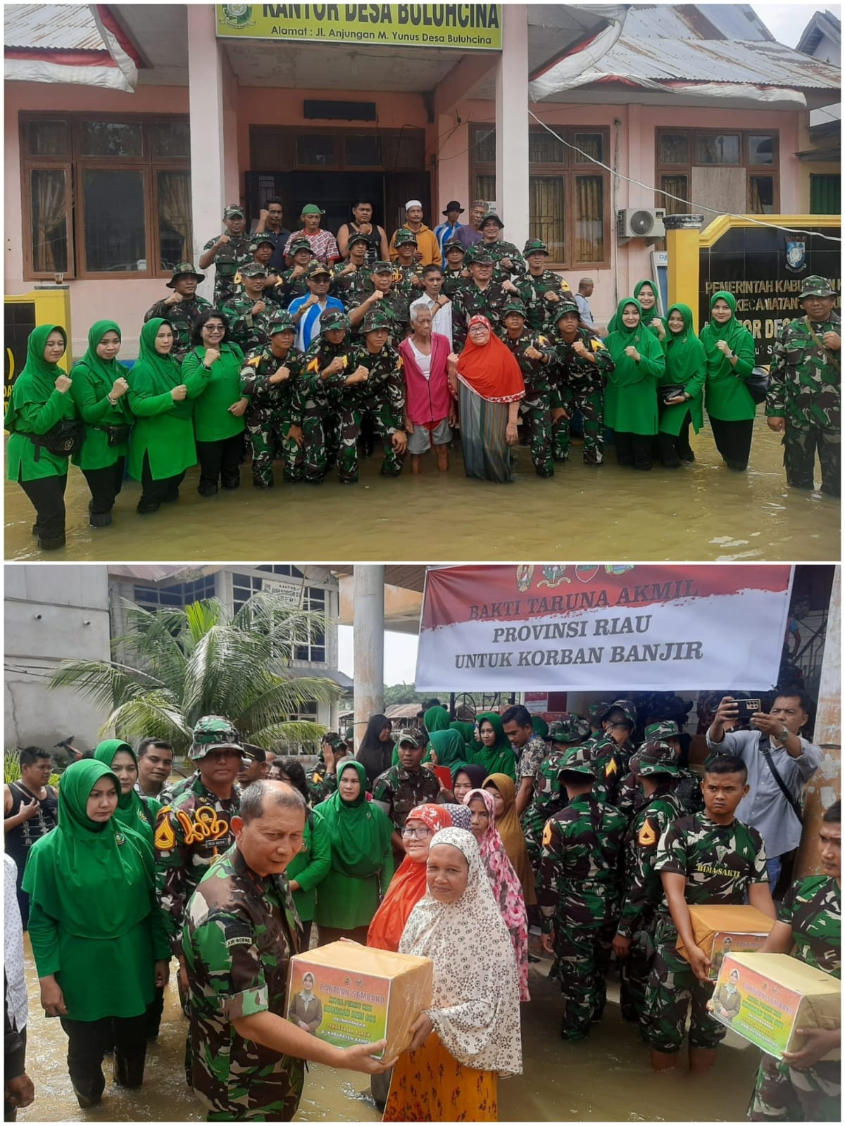 Pada kesempatan ini, Danrem 031/WB dan Para Siswa Amil 2023 langsung melaksanakan Peninjauan Lokasi rumah rumah warga yang terdampak Banjir dengan menaiki perahu dan di lanjutkan membagikan sembako secara simbolis dari Korem 031/WB Peduli Kemanusiaan.