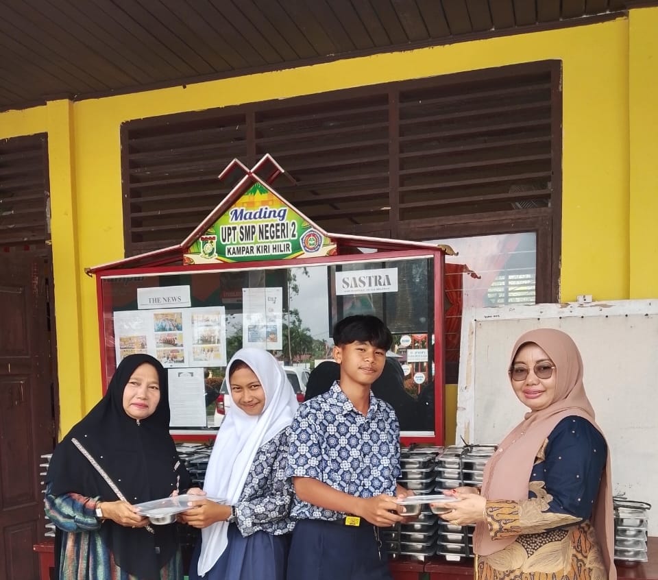 Kami keluarga besar UPT SMPN 2 Kampar Kiri Hilir mengucapkan, terima kasih bagi kepada Bapak Presiden Jenderal TNI (Purn) Prabowo Subianto yang telah memprogram Makanan Bergizi Gratis kepada siswa siswi di sekolah,” ucap Syusilayarni, S.Pd, M.Pd