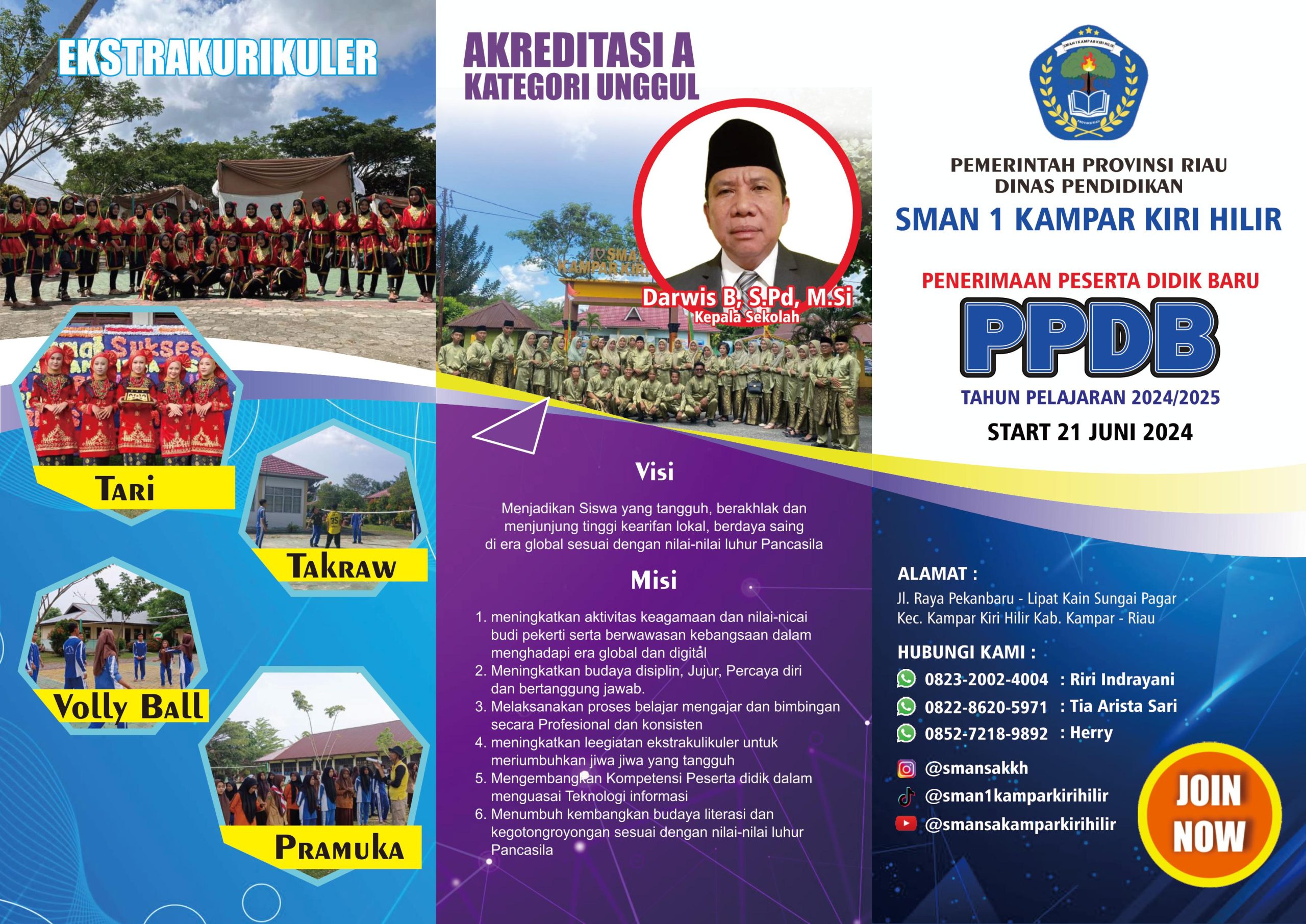 Kami berharap melalui Siap PPDB Online SMAN 1 Kampar Kiri Hilir TP. 2024-2025 dengan pendaftaran Gratis untuk semua siswa siswi yang mendaftarkan diri.” Mari terus tingkatkan Belajarmu dan Bakatmu, segeralah bergabung menjadi keluarga besar SMAN 1 Kampar Kiri Hilir, kecamatan Kampar Kiri Hilir kabupaten Kampar,” pungkas Kepsek Darwis B, S.Pd, M.Si (MO/HMP/SM)