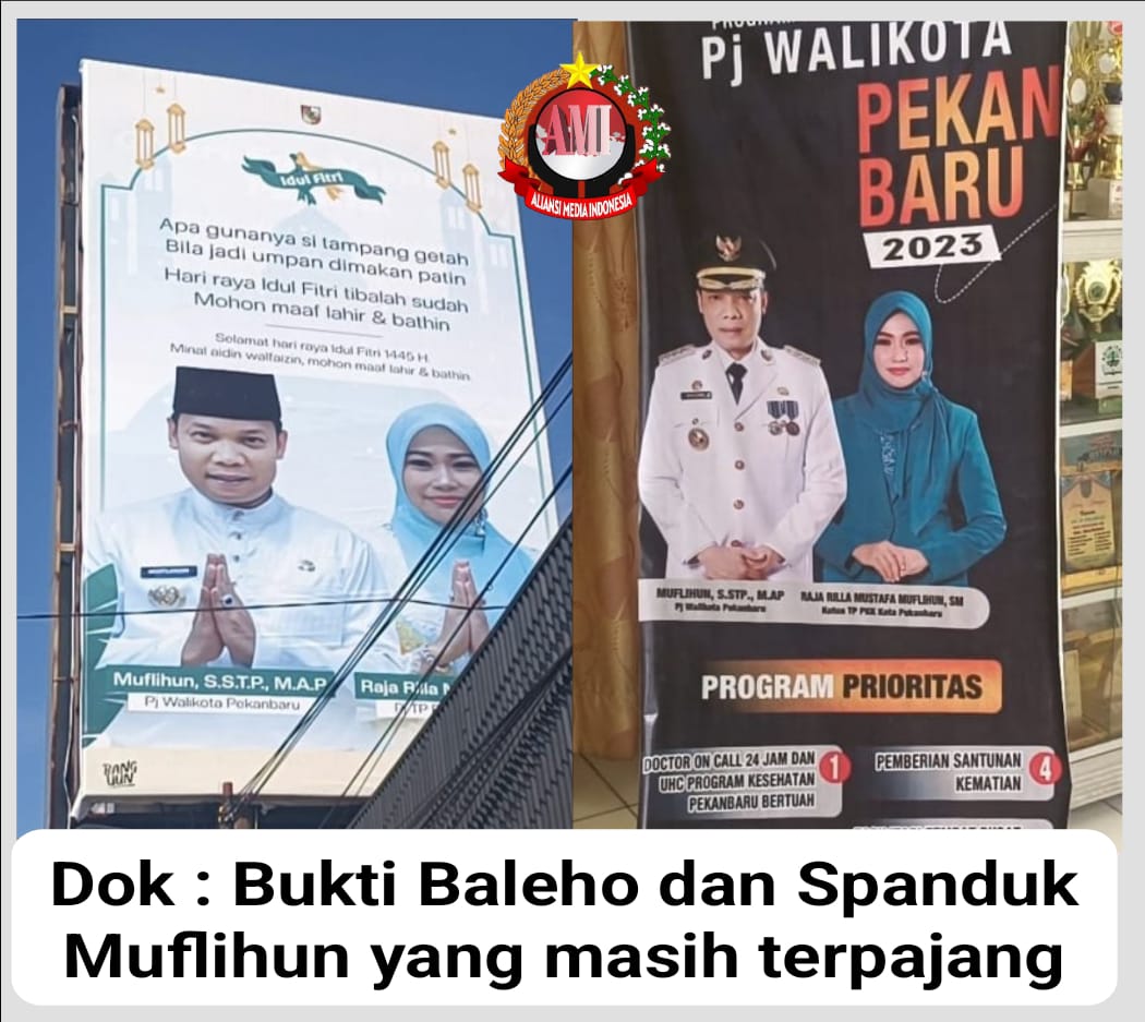 Dipenghujung, SI menyampaikan.” Diharapkan Pemerintah Pekanbaru melalui Satpol PP dan Dinas Pendidikan kota Pekanbaru menurunkan Baleho, spanduk dan photo photo Muflihun yang masih mengenakan pakaian resmi Walikota Pekanbaru sebagai PJ Walikota Pekanbaru.” ucapnya