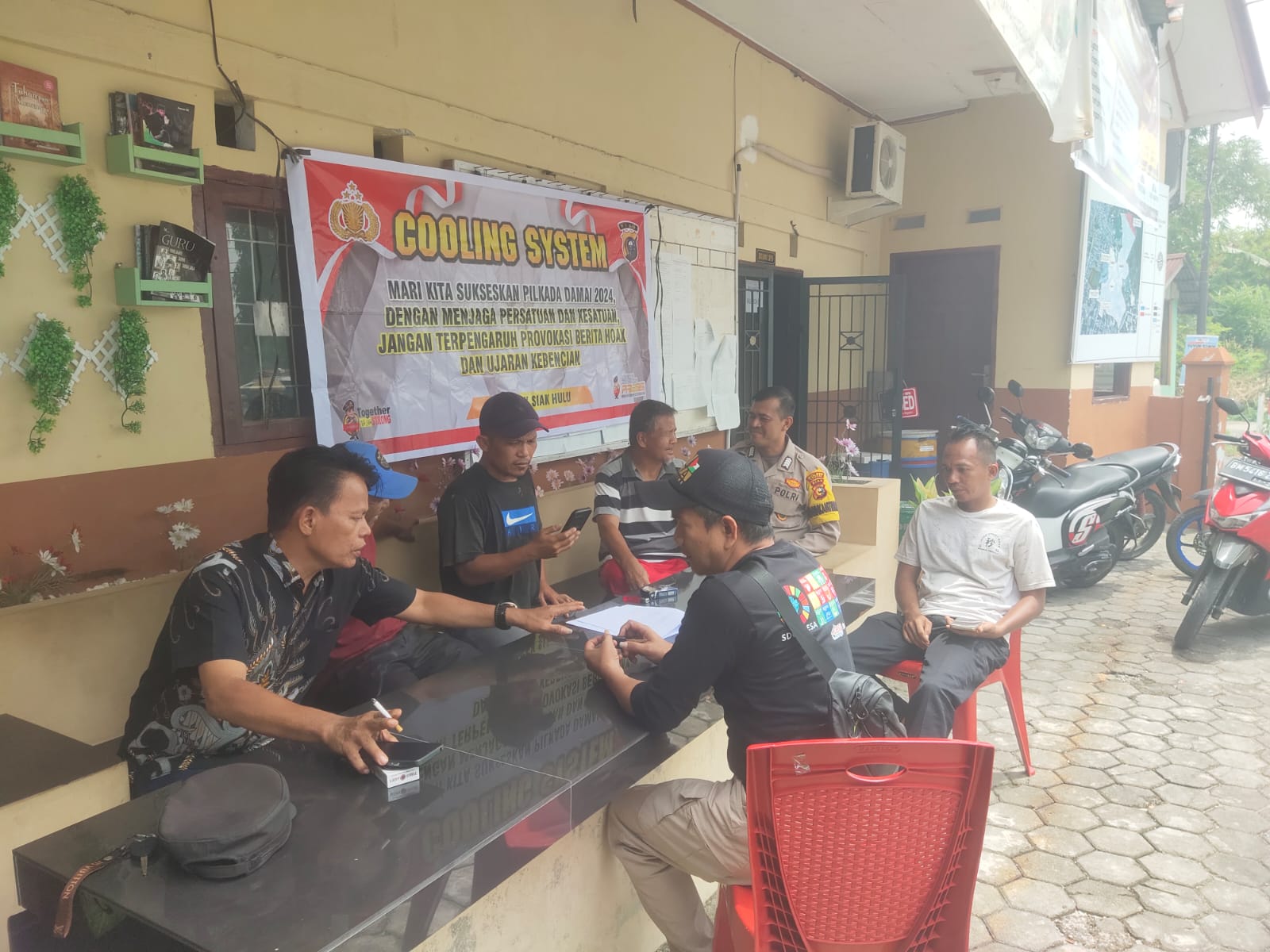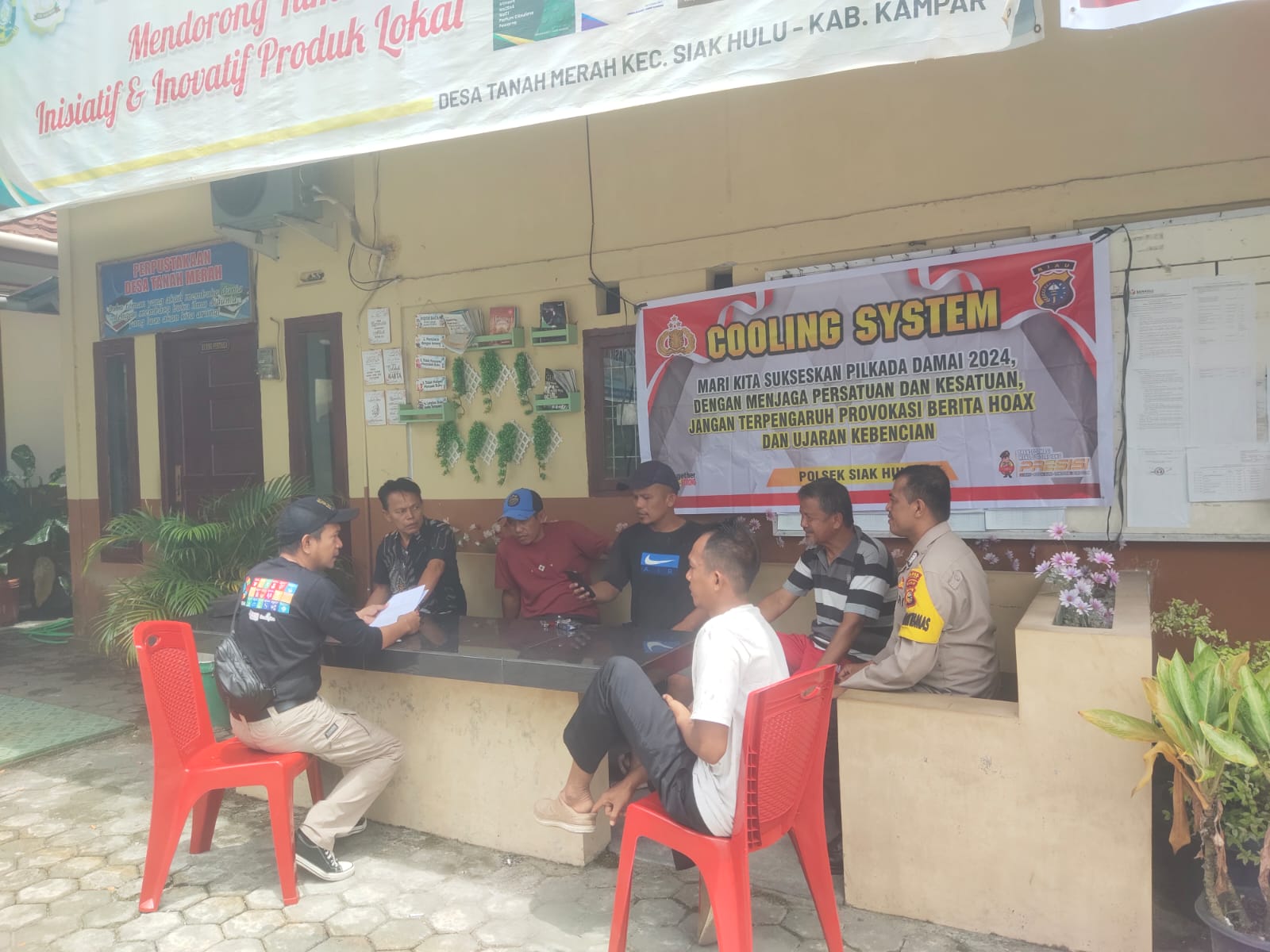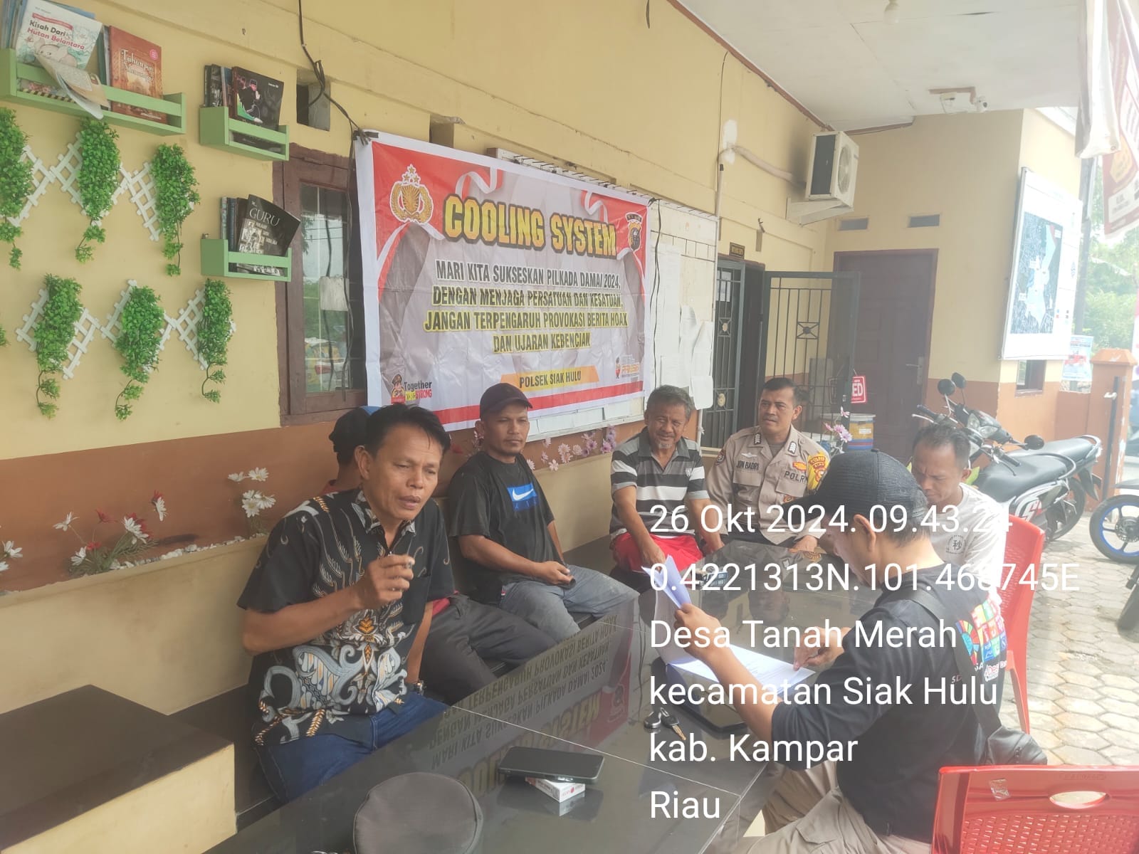 Kampar, Harimaupagi.com – Dalam rangka ajang Pilkada Serentak yang akan dilaksanakan pada tanggal 28 Nopember 2024. Kapolsek Siak Hulu AKP Asdisyah Mursyid, S.H selama tahapan menjelang Pilkada serentak, perintahkan Unit Binmas melaksanakan “Cooling System” diberbagai tempat khususnya di kecamatan Siak Hulu kabupaten Kampar.