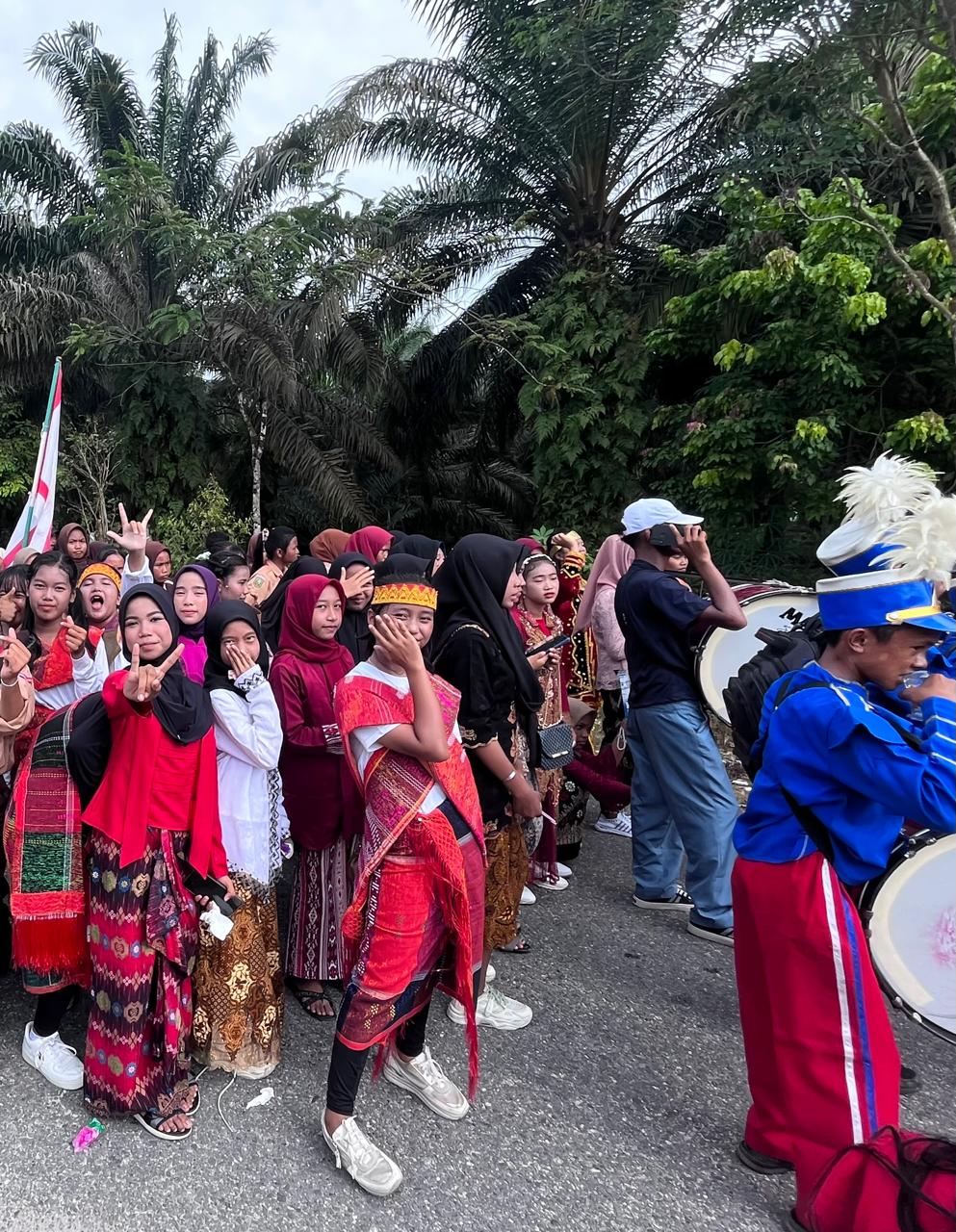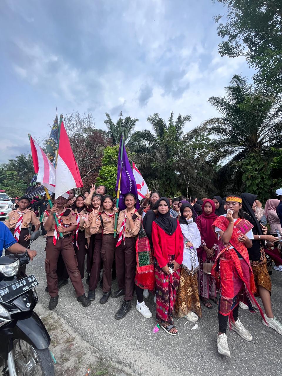 Kampar, Harimaupagi.com – Ratusan siswa siswi UPT SMPN 1 Perhentian Raja Kabupaten Kampar juga memperingati HUT Sumpah Pemuda Ke-96 dan dilanjutkan perayaan dengan mengadakan Lomba Pidato dan Semarak Pawai memakai Pakaian Adat Nusantara, Senin tanggal 28 Oktober 2024 lalu.