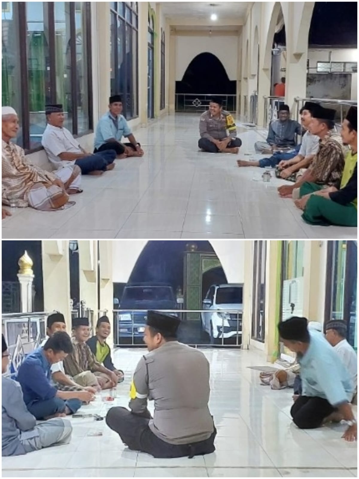 Usai Sholat Berjamaah, Bhabinkamtibmas Polsek Perhentian Raja Lakukan Giat Cooling System Pemilu Damai