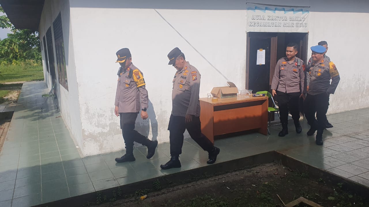Kampar, Harimaupagi.com – Dalam rangka pengamanan Pemilu Damai Tahun 2024. Kapolres Kampar AKBP Ronald Sumaja S.I.K, M.H diwakili Wakapolres Kampar yang juga Selaku Wakaopsres Kompol Andi Cakra Putra S.I.K, M.H didampingi Kasi Propam selaku Pamatwil Rayon-I AKP Markus Sinaga S H, M.H Laksanakan Inspeksi Mendadak (SIDAK) Ke PPK Kecamatan Siak Hulu. Minggu (18/2024)